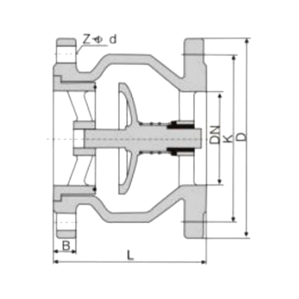 Le disque de vanne est guidé par l'axe central aux deux extrémités de l'entrée et de la sortie, s'ouvrant et se fermant de manière flexible, et peut être installé horizontalement ou verticalement. Le disque de valve est à ressort et sa fermeture rapide peut réduire efficacement la pression des coups de bélier, avec de bonnes performances d'étanchéité et aucun bruit lors de la fermeture. Résistant à l'usure et longue durée de vie.