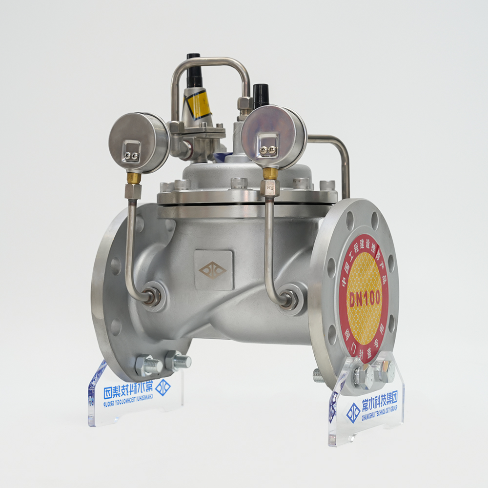 Le réducteur de pression réglable est un type à commande hydraulique à membrane, installé dans le système d'alimentation en eau et de drainage, et contrôle la pression de sortie de la vanne principale à une valeur fixe. La pression d'entrée peut être réduite à une pression de sortie requise en ajustant la vanne pilote et la pression de sortie peut être maintenue stable en s'appuyant sur l'énergie du milieu lui-même, c'est-à-dire que la pression de sortie ne change pas en raison des changements de pression d'entrée ou de débit de sortie. Lorsque la pression devant la vanne est inférieure à la pression réglée derrière la vanne, la vanne principale se ferme automatiquement lentement.